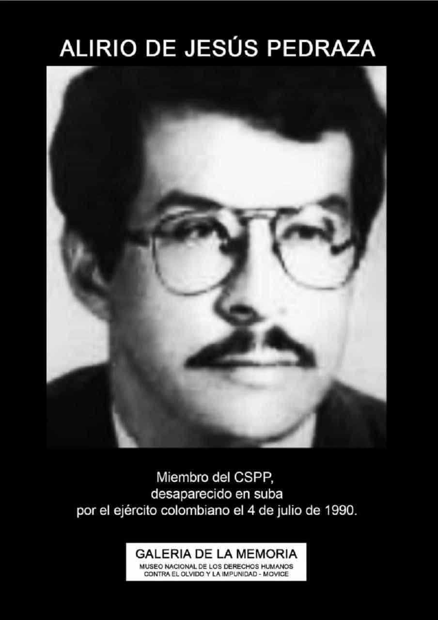 Hacia las 10 de la noche del 4 de julio de 1990 llegó Alirio Pedraza Becerra al centro comercial La Campiña, (calle 145 con carrera 92 de Bogotá) para comprar el pan y llevarlo a su hogar, donde lo esperaban, como de costumbre, su esposa Virginia Vargas y su pequeño hijo Óscar Alberto. Cuando salía de la panadería para dirigirse al edificio de su apartamento a unos cuantos metros, lo aguardaban ocho hombres vestidos de civil. Habían llegado al lugar en tres vehículos: un Mazda oscuro, un Chevrolet Trooper blanco y otro. Los tres automóviles se estacionaron frente a la panadería.1
