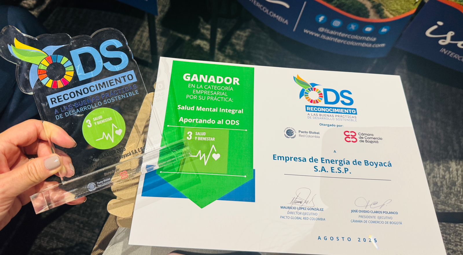 El premio, considerado el más importante en Colombia en materia de sostenibilidad, celebra las acciones que contribuyen al logro de los Objetivos de Desarrollo Sostenible (ODS) y le fue otorgado a la Empresa de Energía de Boyacá este jueves, en la octava edición del reconocimiento que se adelantó en el Congreso de Pacto Global Red Colombia: ‘Cambiando el Rumbo, Alianzas por el Futuro’.