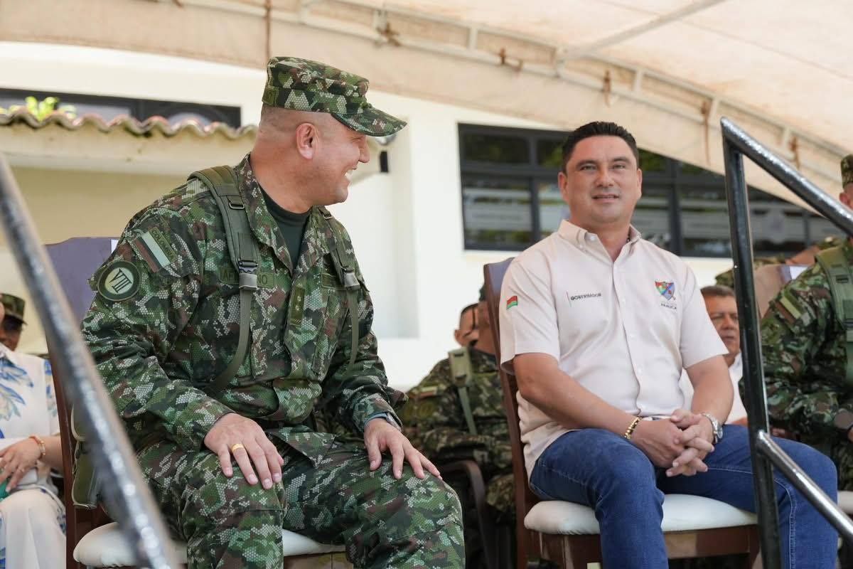 Renson Martínez, el gobernador de Arauca, hizo entrega de una placa de reconocimiento al general Africano López, exaltando su compromiso, honor y disciplina al servicio de la soberanía y la seguridad del pueblo araucano. En la ceremonia, el gobernador reiteró la disposición del Gobierno departamental para seguir trabajando de la mano con la fuerza pública y con los más de 7.000 hombres que garantizan la tranquilidad y defensa de ese territorio.