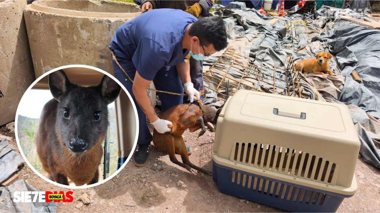 Un venado soche fue rescatado en Duitama por Corpoboyacá, en coordinación con la Alcaldía y MinCivil, tras ser perseguido por perros. El ejemplar no sufrió lesiones y será retornado a su hábitat.