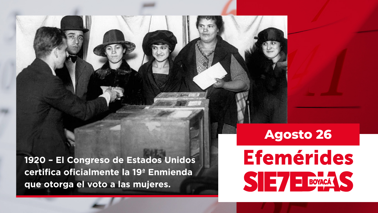 1920 – El Congreso de Estados Unidos certifica oficialmente la 19ª Enmienda que otorga el voto a las mujeres.