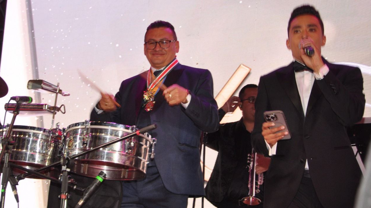 Rincón hizo gala de sus destrezas con los timbales, acompañando a uno de los grupos musicales que se presentó en los actos conmemorativos.