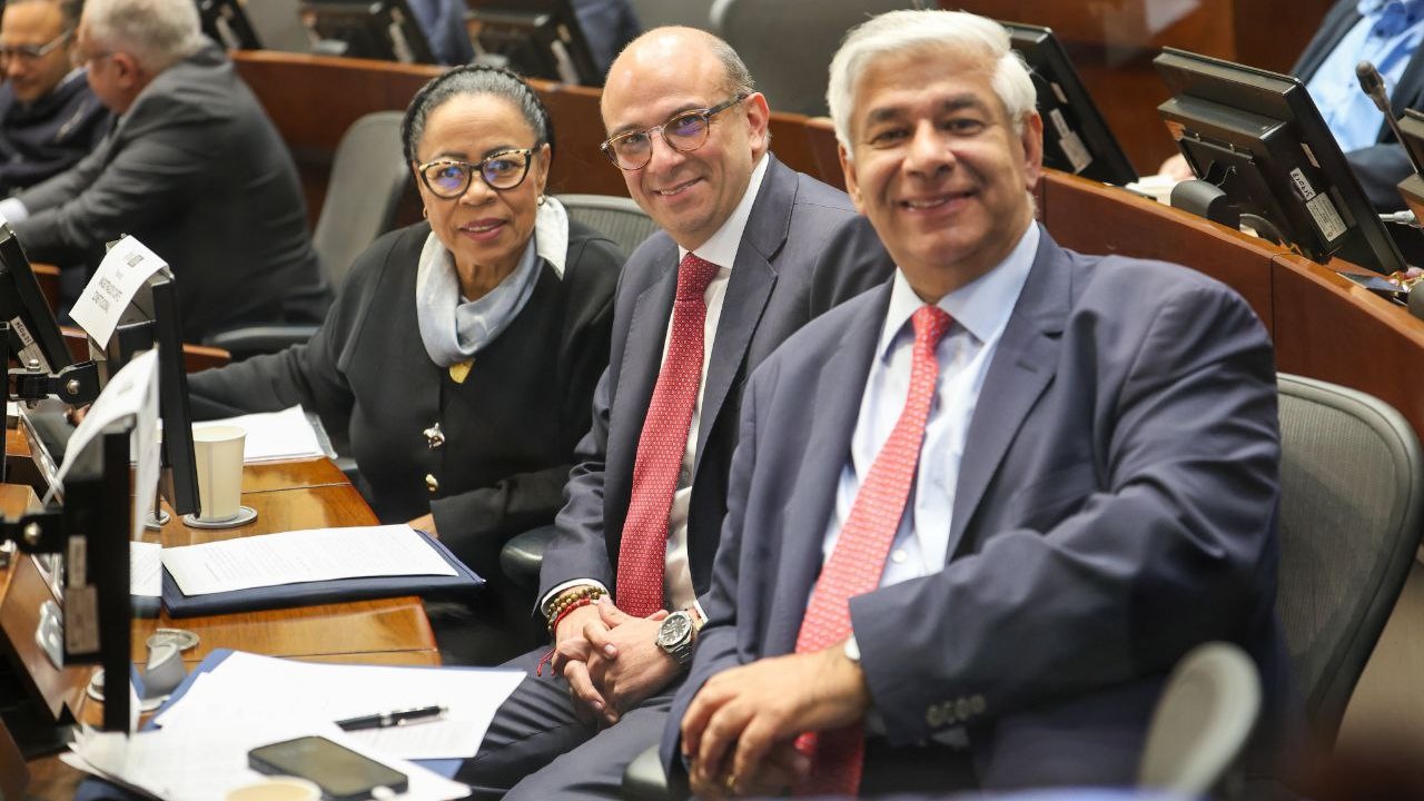 “Felicitamos a Carlos Fernando Camargo (centro en la foto), por su elección como nuevo magistrado de la Corte Constitucional. Una responsabilidad clave para proteger la Constitución, los derechos de la ciudadanía y el equilibrio de poderes en nuestro país”, posteó en X la congresista Espitia.