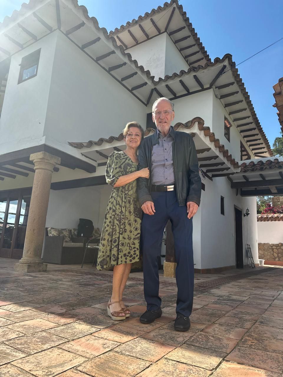 Stanley con su esposa al frente de su residencia en Villa de Leyva.