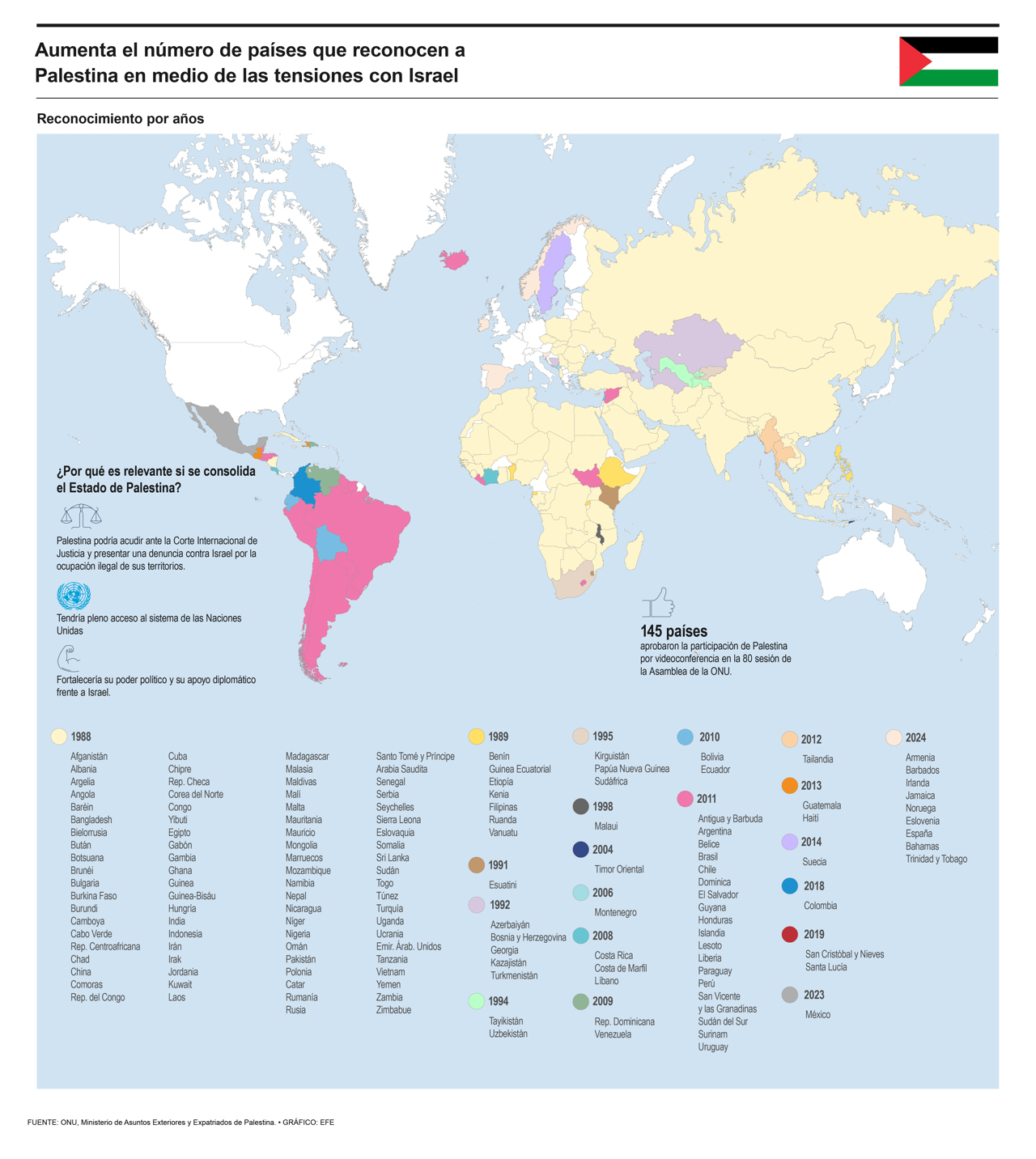 La escalada de tensiones en Oriente Medio ha vuelto a poner el reconocimiento internacional de Palestina en el centro de atención.