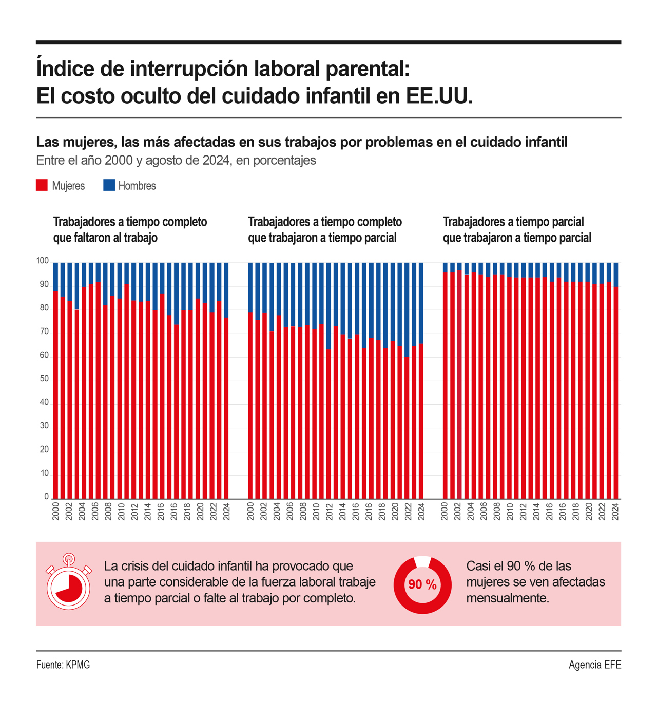 Las interrupciones laborales por responsabilidades parentales aumentaron un 13 % en el 2024 en Estados Unidos, según el Parental Work Disruption Index de KPMG.