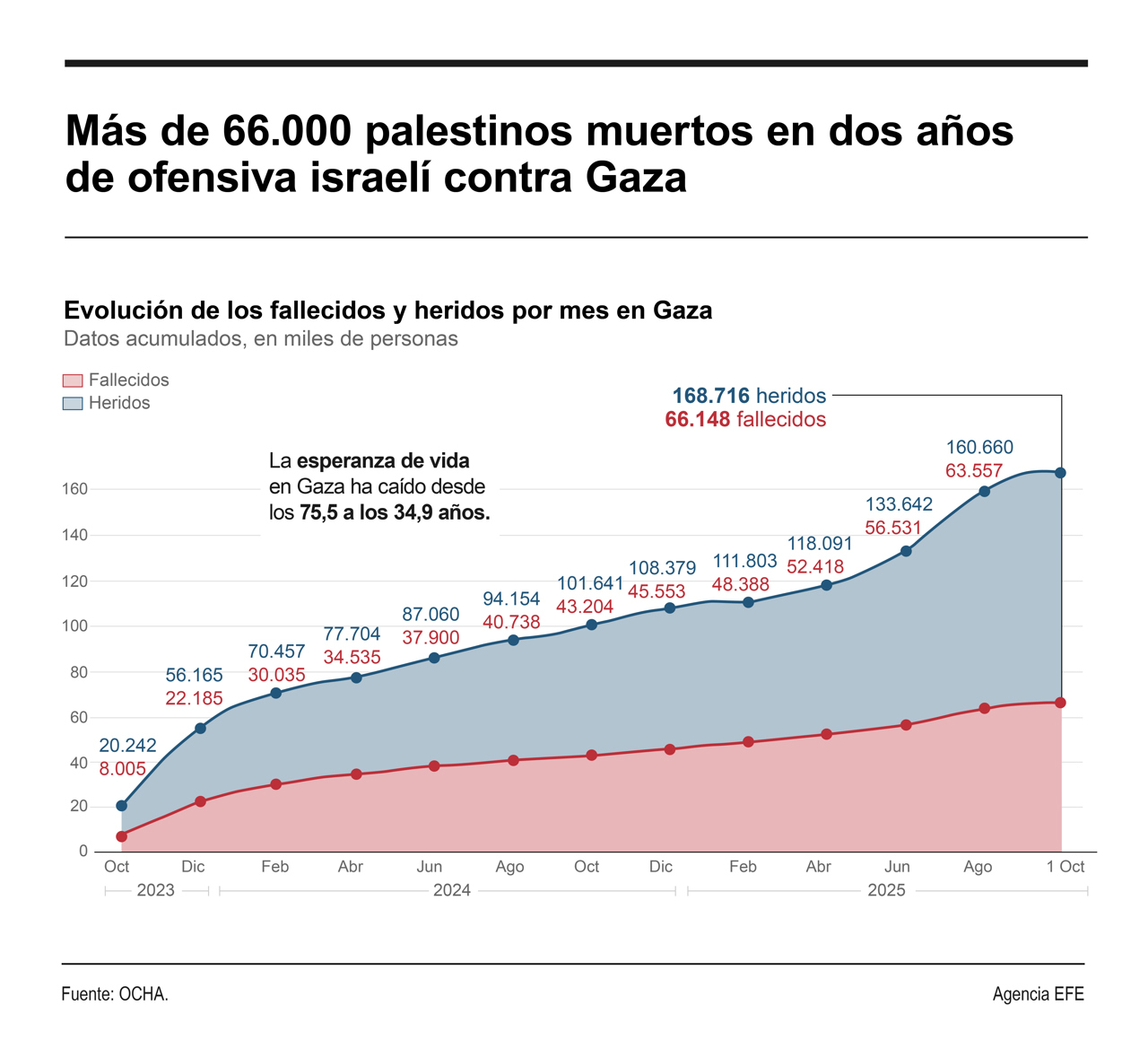 [Infografía] Los muertos por la ofensiva israelí en Gaza superan los 66.000