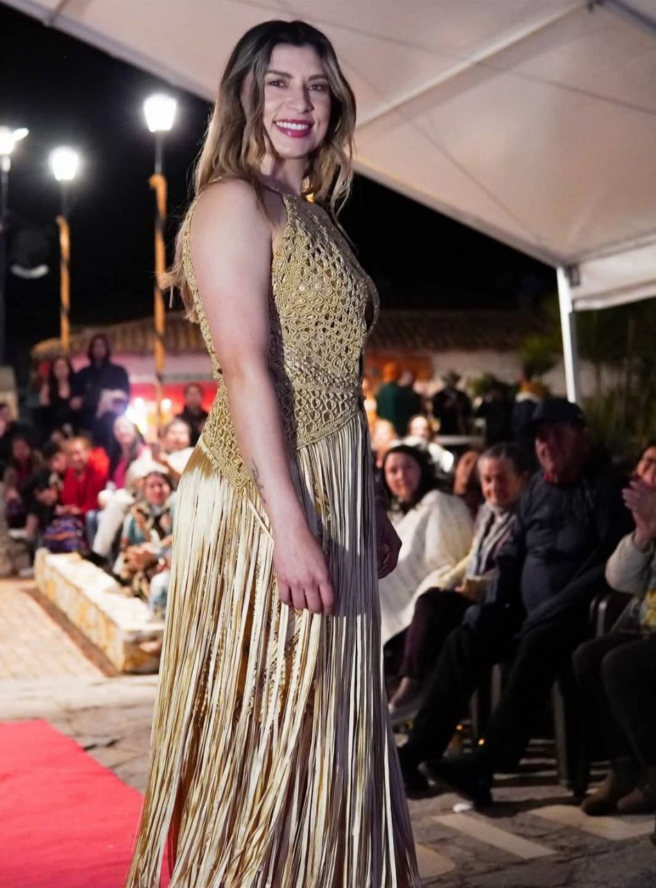 La alcaldesa de Duitama, Rocío Bernal Mejía, desfiló con un vestido de macramé. Foto: archivo particular