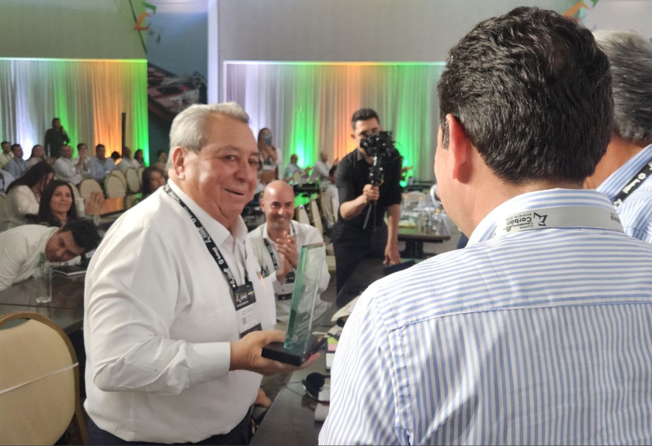 Reconocimiento de Fenalcarbón a don Miguel Parra en la Cumbre Colombiana del Carbón 2025. Foto: Boyacá Sie7e Días