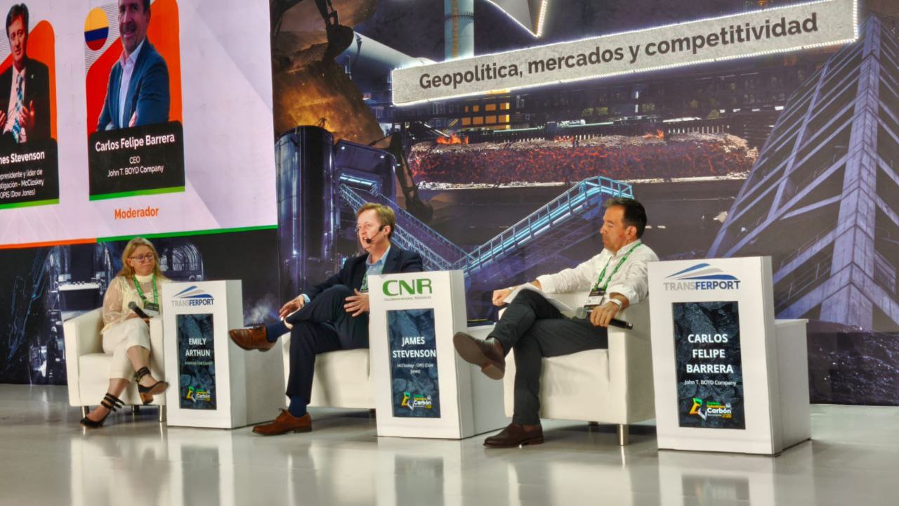 El panel ‘Adición energética y transición industrial’ marcó el cierre académico de la jornada, con la participación de Emily Arthun, CEO del American Coal Council, y James Stevenson, vicepresidente de investigación de McCloskey – OPIS (Dow Jones), bajo la moderación de Carlos Felipe Barrera, CEO de John T. Boyd Company.
