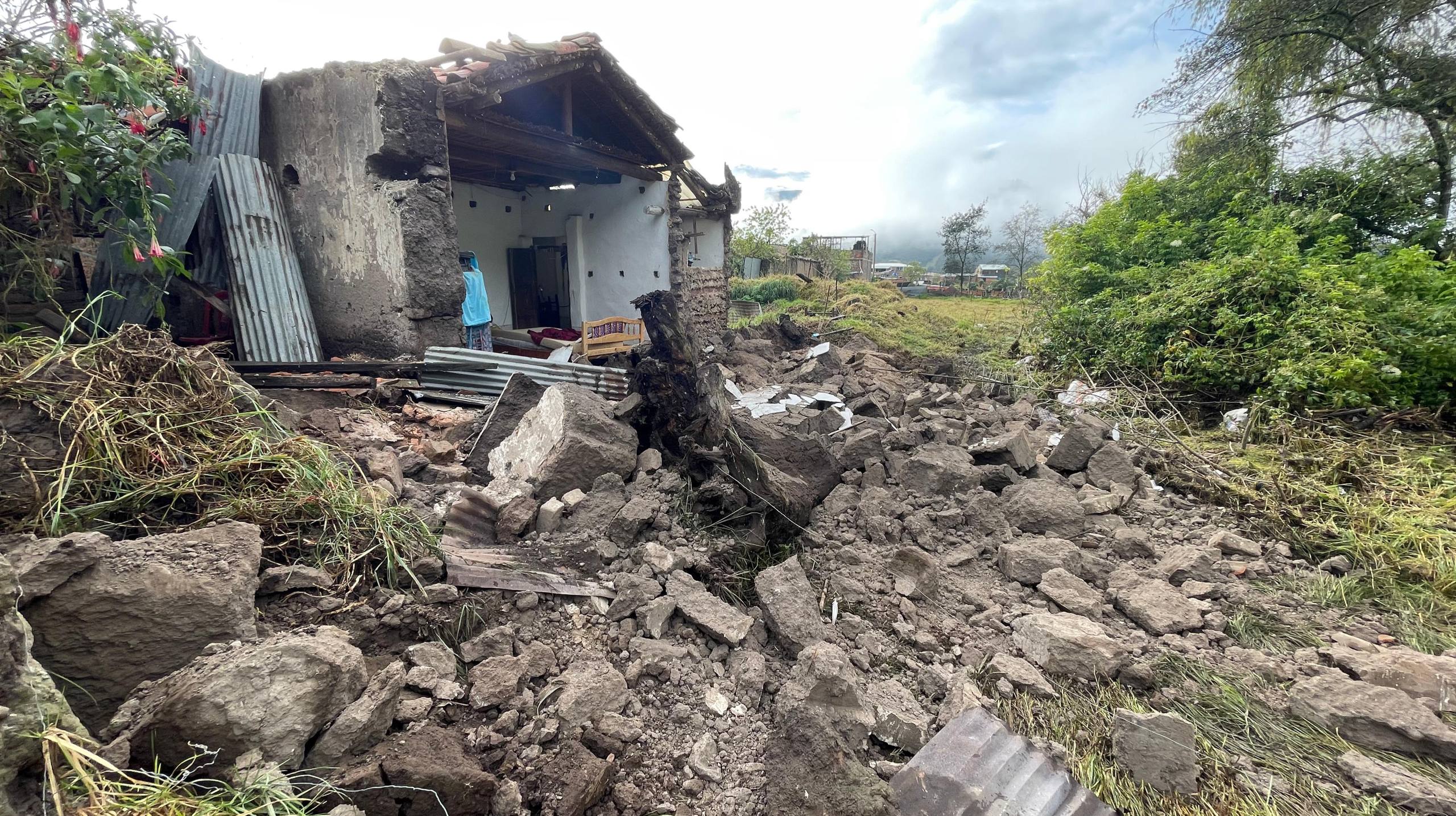 Una de las viviendas afectadas por el desbordamiento de la quebrada El Guirre en Belén. Octubre 31 de 2025. Foto: Prensa Alcaldía de Belén.