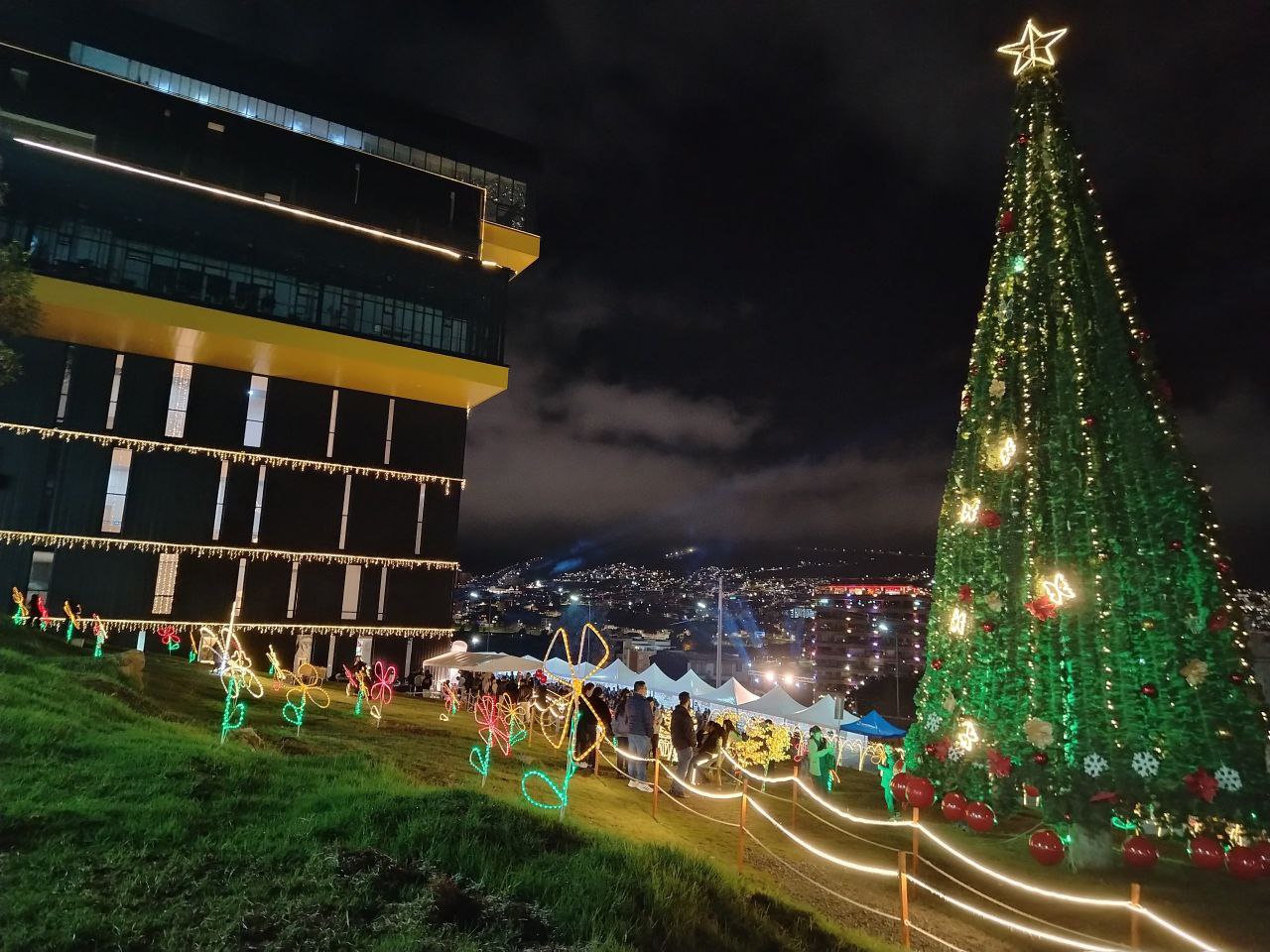 El árbol gigante de Navidad al ingreso del Club Comfaboy de Tunja. Foto: Boyacá Sie7e Días